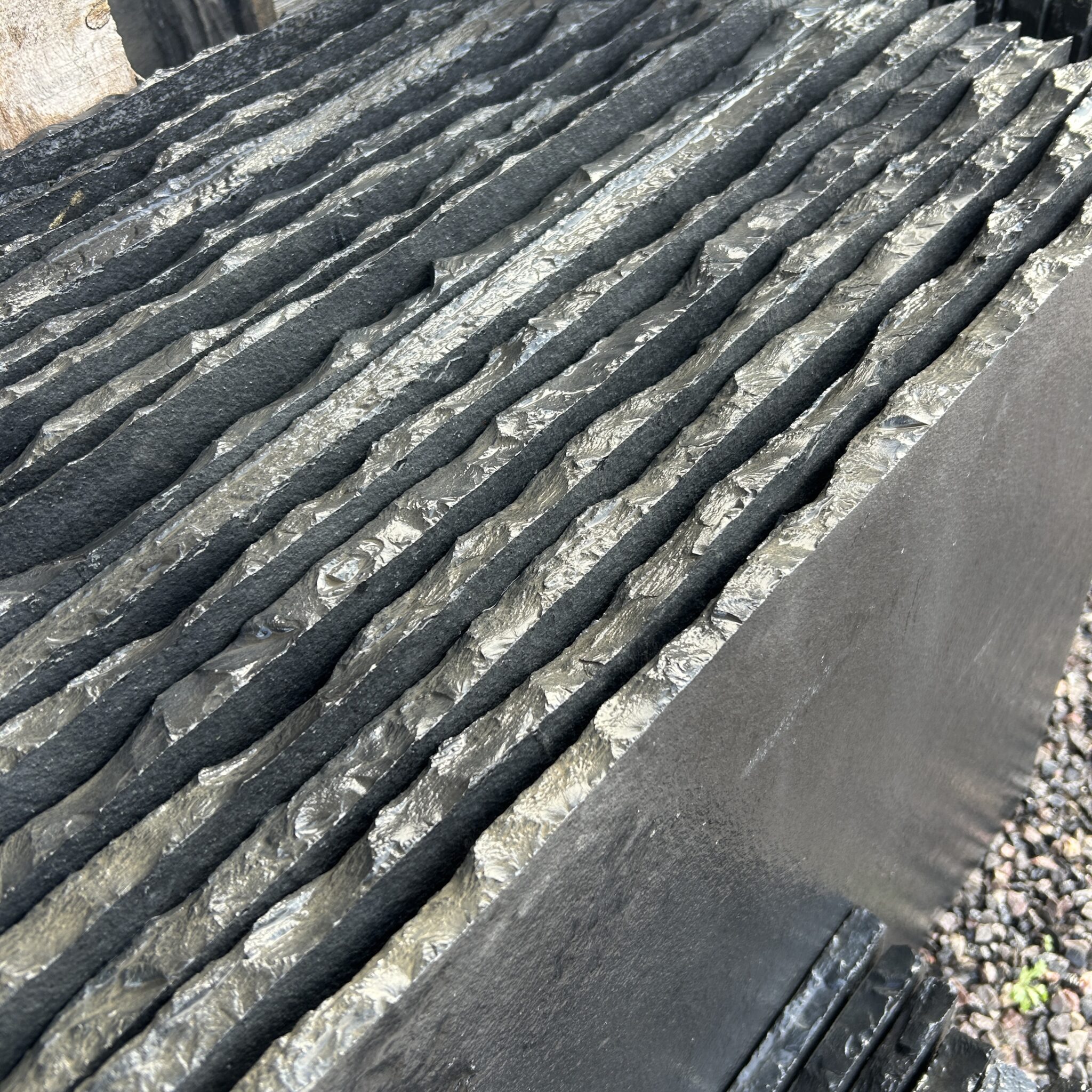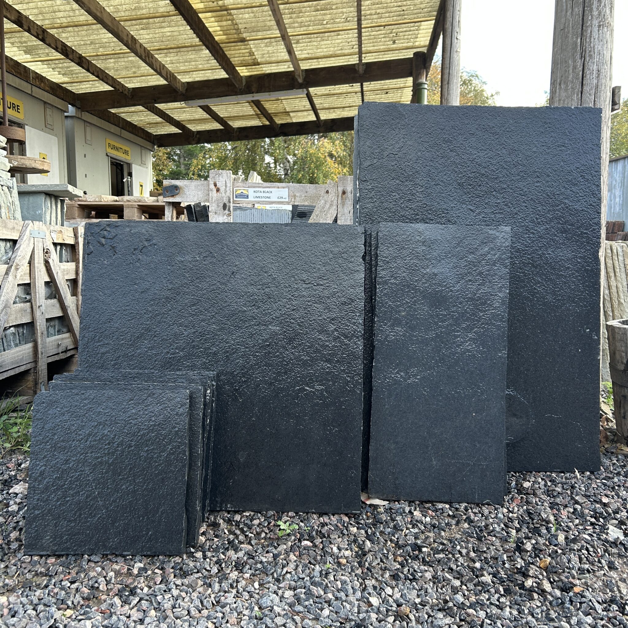 Kota Black is natural limestone with a flat surface, it is calibrated 22mm thickness.
