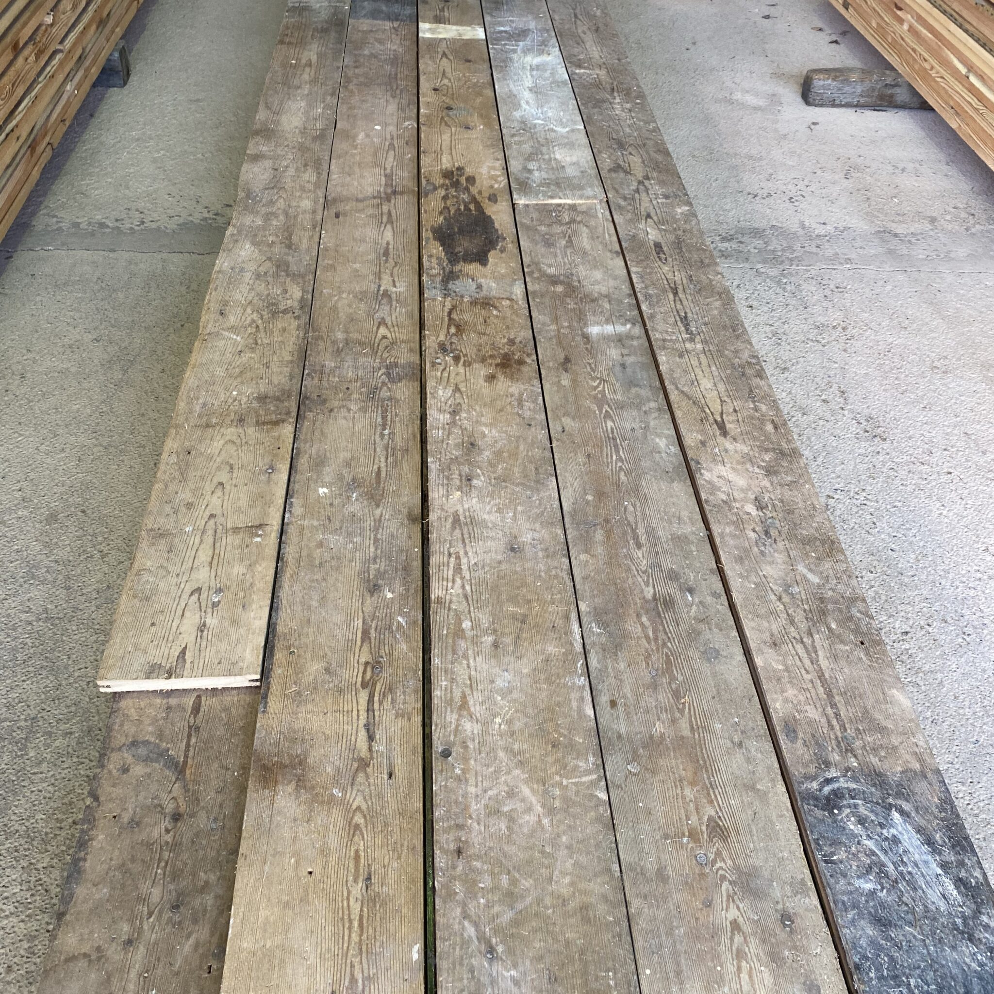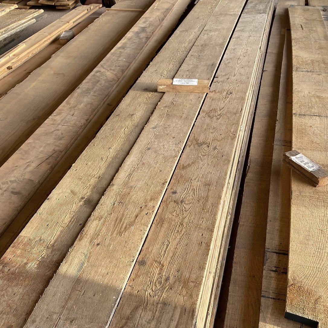 We have a stock of Reclaimed pine floorboards, however they come and go very quickly so it’s always worth giving us a call to check the current stock.